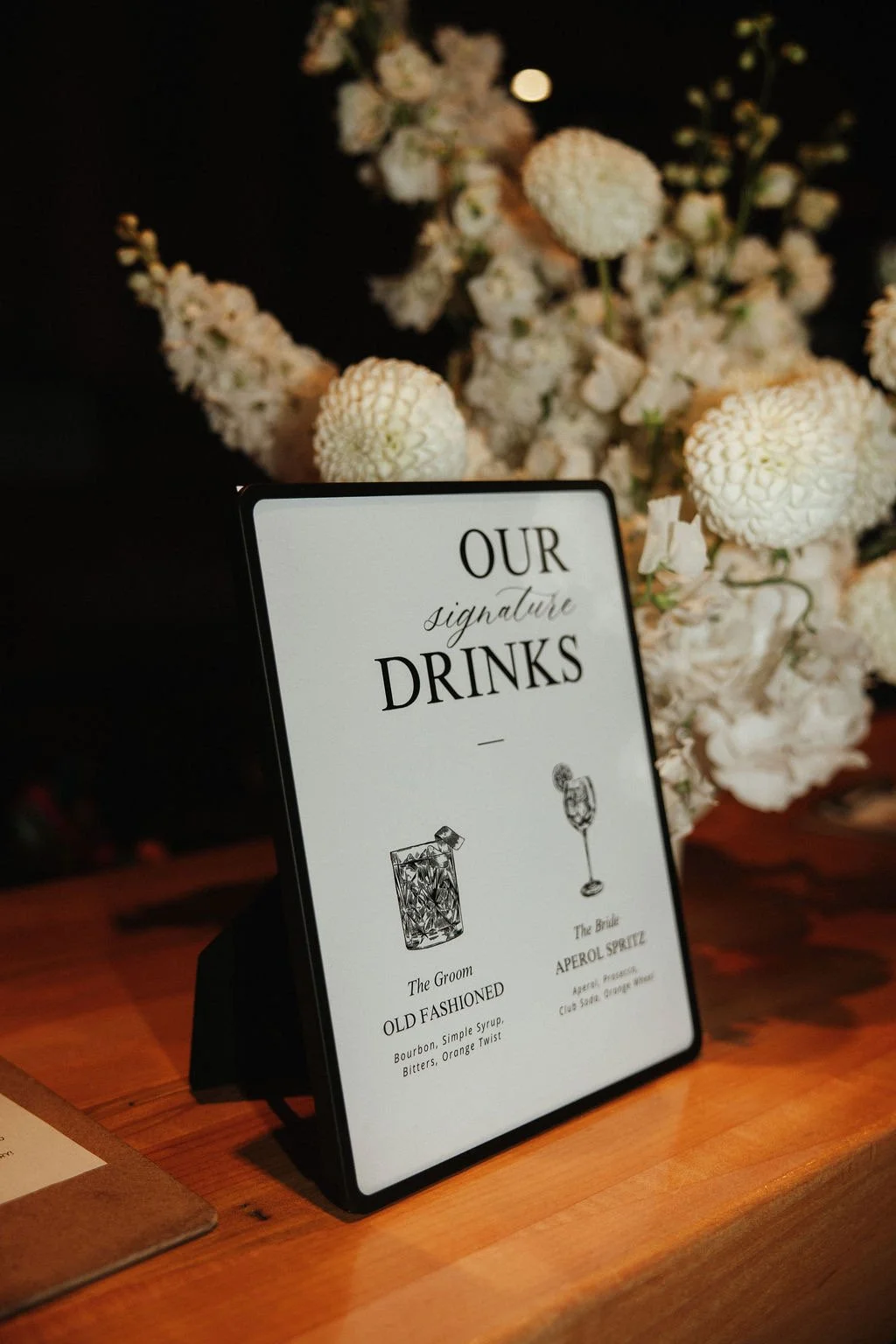 A bespoke wedding suite designed to elevate every touchpoint of the celebration. This project included cohesive design across printed and on-site elements, featuring custom signage, menus, favour labels and mirror decals. Every touchpoint was thoughtfully designed to align with the couple’s aesthetic, creating a seamless visual experience from ceremony to reception.